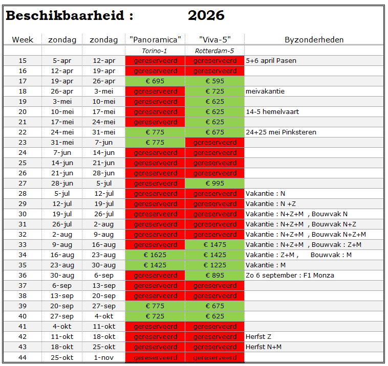 Als gevolg van gewijzigde “wet en regelgeving in Italië” en het daarop aangepaste beleid van de Camping waren wij genoodzaakt om de “shared use” tarieven voor het seizoen 2026 te herzien.