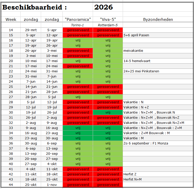 Als gevolg van gewijzigde “wet en regelgeving in Italië” en het daarop aangepaste beleid van de Camping zijn wij genoodzaakt om de prijzen voor het seizoen 2026 te herzien zodra we de consequenties daarvan in beeld hebben.